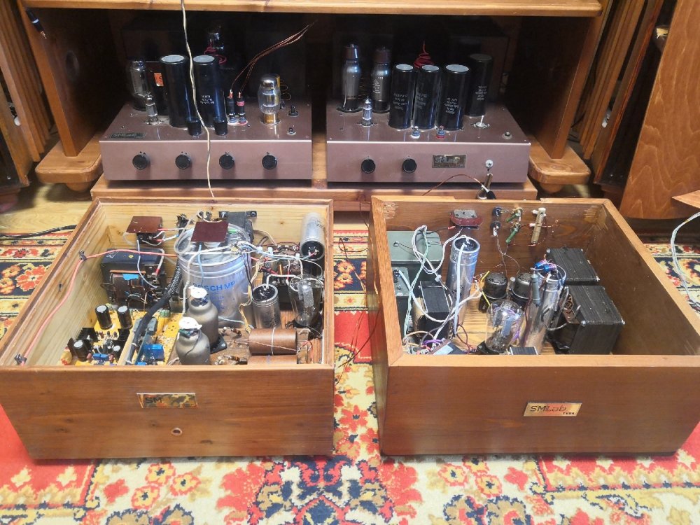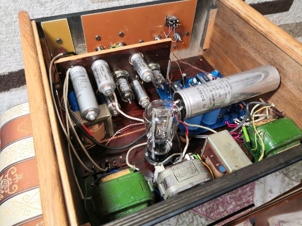 2. ""Миша (!!)(звонок в полночь ... деревни Шоша...Завидовского района. ) , у тебе корпуса приемников Телефункен есть цвета вишни ? "" ""Продай , товарищ из Киева делает стереосистему "" . ""Не продам...!"" Впрочем один уступил .. . Это целое архиэксклюзивное аудионаправление для особо ""аудиоотмороженных "" ..., и ладно делали моноконсоли , типа АМЛ +++++ , но стерео -две консоли , это уже интригующе. Впрочем , покойный старик и это советовал. Я обожаю звук и музыкальность отреставрированных элитных приемников (с неубитыми деталями) или реально моно""мега""усилителя , размещенного в корпусе довоенного приемника или консоли . Этакий реальный отжим референса музыкальности и особого мегакайфа -для посвященных в изыск звучания настоящего , сорри , аудио. Моя домашняя консоль в корпусе 896 . Динамик -12"" Телефункен 39 года. Усилитель AL5 , AF7 , RGN1404 , в пентоде и БП без электролитов . Не нравятся мне эти ""электроли..... ты"" .