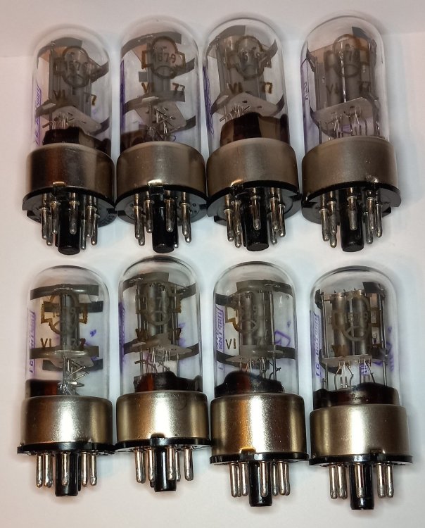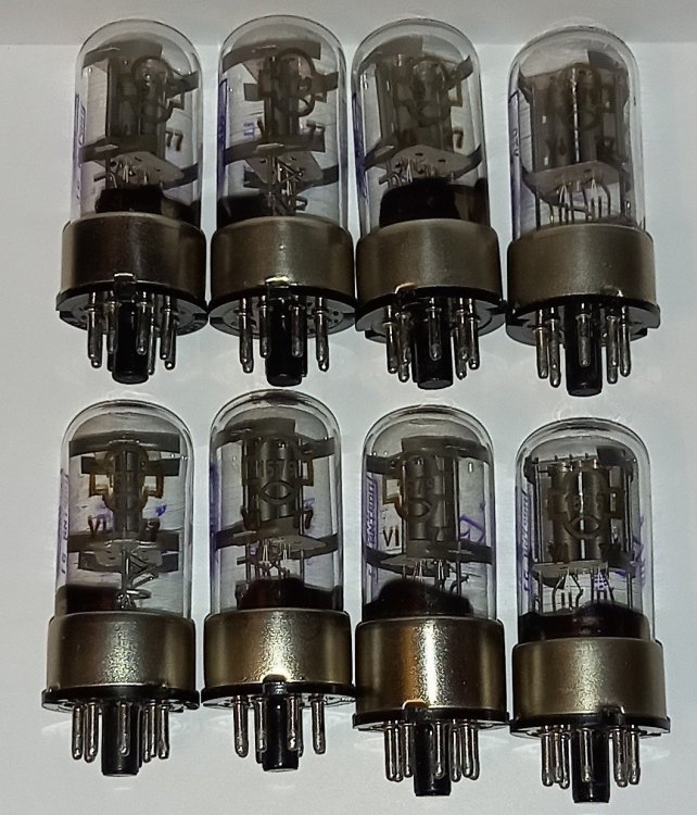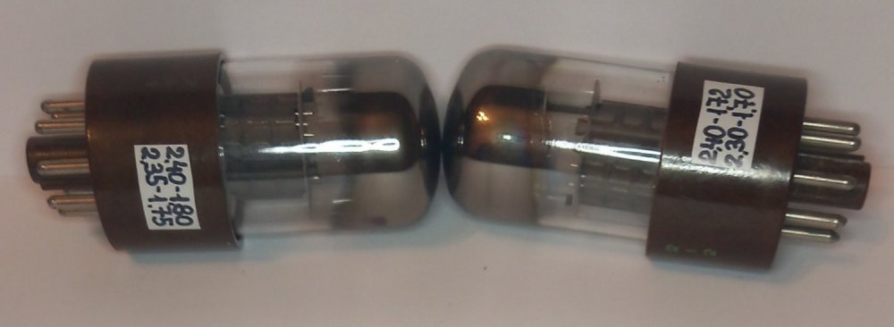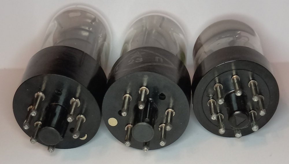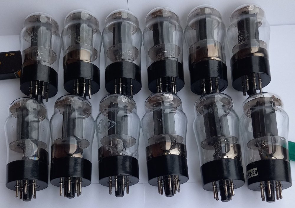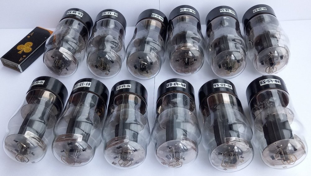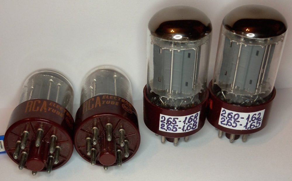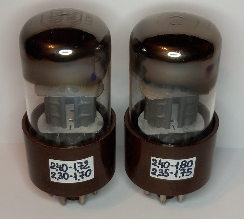 Радиолампы 6н6п 1961г.- 3 т.р.шт. Радиолампы 6н6п-ир 1972г. - 2.5 т.р.шт. ////////////////////////////////////////////////////////////////////////////////////////////// Радиолампы 6н6п , первого выпуска . с конструкцией анодной системы в виде коробки , все знают про что речь . и пояснения здесь излишне . .............................................................................................................. Радиолампы 6н6п-ир . специальная разработка , для работы в экстремальных условиях . со способностью работать при больших импульсных токах , при повышенной радиации , с большим запасом ресурсов катода . Аноды тоже в виде коробки . но в 2-2,5 раза больше по объему чем у обычных 6н6п . Вообщем все делалось для войны . Данные лампы показали просто отличные звуковые качества и свойства . в аудио трактах , усилительной техники .