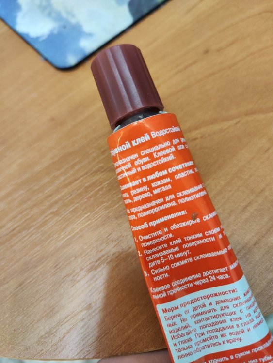 Каким-нибудь каучуковым клеем, который клеит резину и металл, но момент не пойдет, фигня, приличный каучуковый клей есть у сапожников, они им подошву приклеивают, можно их попросить приклеить, продается он банками большими, в розницу тюбика не найти, ну или вот как минимум, в леруа покупал, однозначно лучше момента, перед склейкой зашкурить и обезжирить, дальше по инструкции.