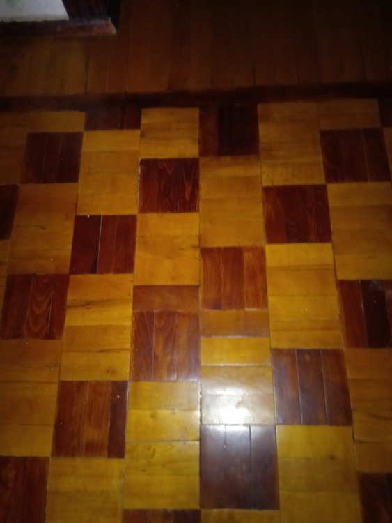 Паркет ложился более 30 лет назад. Пересортица (отходы), Разная порода, разные размеры в ширину, длину, толщину, тогда и этому был рад. Шлифовался дрелью, ложился на смолу. Лежит себе и лежит. Надо освежить лаком.