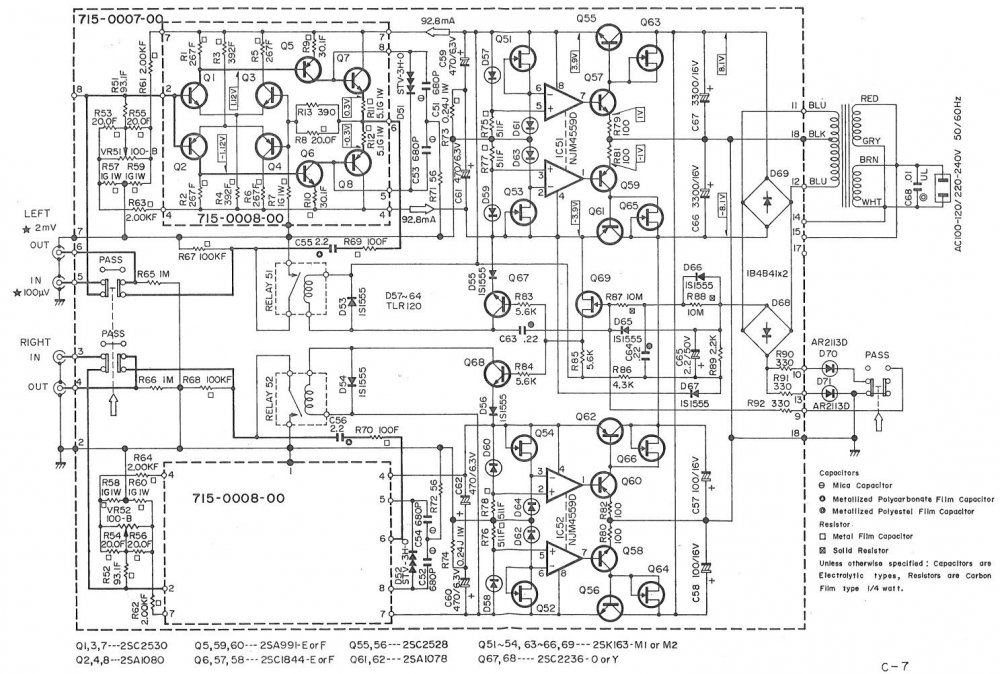 Судя по номиналу, данные конденсаторы не для этой схемы. Для таких малосигнальных устройств существует довольно широкий выбор фольговых конденсаторов. Даже скажу крамолу)), пробовал использовать в LCR коррекции неполярные электролиты BG N 4,7х50, каких-либо противопоказаний обнаружено не было. Совершенно не в пику Вам, но ответ на вопрос "что мы слышим и как это должно звучать" до сих пор никем не сформулирован. Хотя тема, безусловно, интересная и, наверное, достойна отдельного обсуждения.