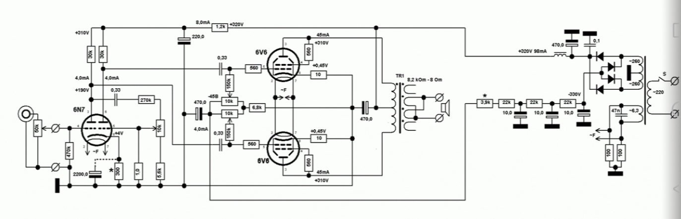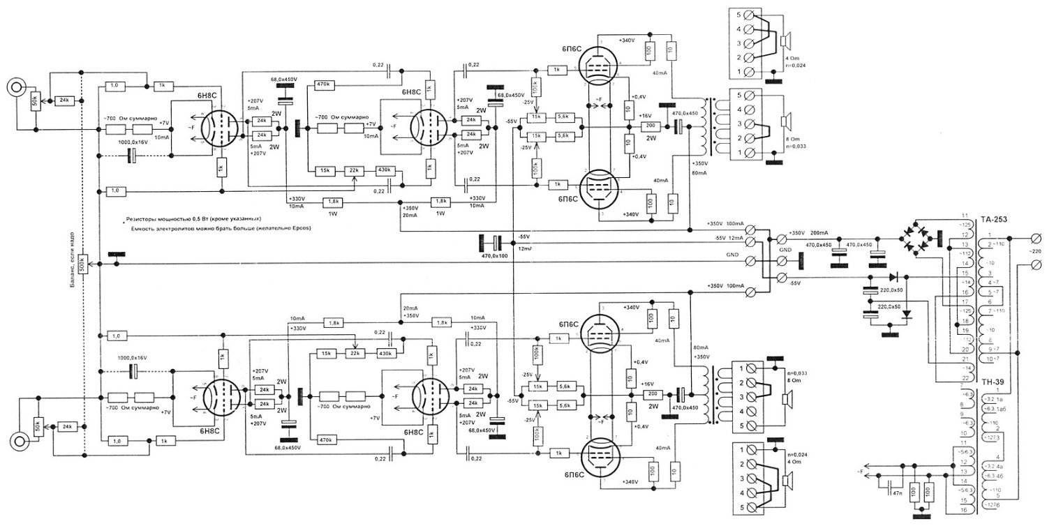 Что то ни чего не могу найти на сайте ни каких схем РР на лампах типа 6н8с/6н9с + 6ф6с/ 6ф6м1 . Кто чего может посоветовать , буду очень признателен.