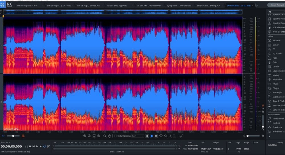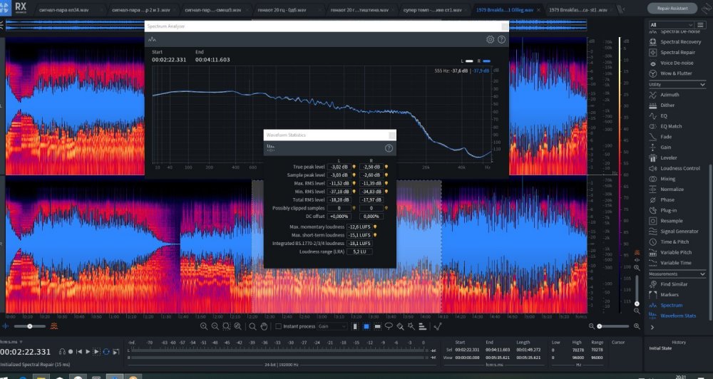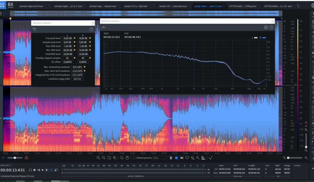• Улдыс, я настраиваю голову немного иначе, использую для этого Изотоп 8 , на нём вся картина раскрывается на спектрах, можно и на спектролабе посмотреть, что радиолюбам на этом форуме привычнее ( я привык к изотопу, как все оцифровщики винила). Тестовая пластинка с АЧХ , настроил, оцифровал, смотрю спектр: Изотоп:   Спектролаб ____________________________ Изотоп покажет всё, достаточно научиться базовым функциям, выше лишь спектры без измерений (изотоп их делает в 2 клика) Ну а после уже не возникают вопросы, любую пластинку цифруешь (хоть треком, хоть "кусочком" или целиком сторону и на изотопе смотришь разницу по каналам, диапазон частот и многое другое, делаешь вывод о пластинке уже не на слух, а наглядно по выданным данным. Когда тракт отстроен, гадать уже не приходиться, что там с пластинками - просто смотришь спектр и вся инфа перед тобой . как на ладони.... Примерно так: ____________________ И всё. Не нужно ничего гадать. Обо всём этом есть и в закрытом клубе, если что - пишите в ЛС, подскажу, дам проги.  В данной теме вряд ли кто с изотопом работал, Лаптев, так точно - он в спектрах ни бельма не смыслит, проверено.