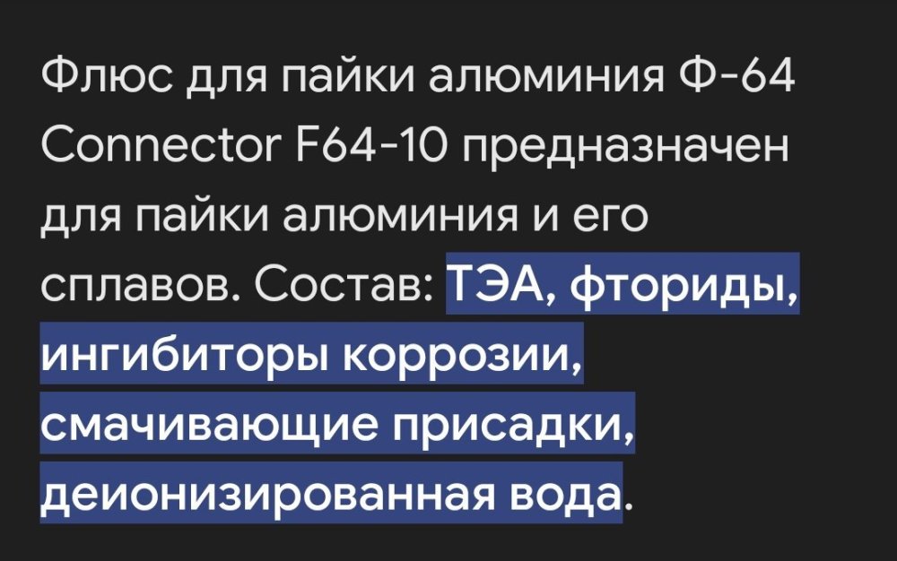 Ужос. Так он же для пайки алюминия и его сплавов применялся. Потом и от него отказались, стали нейтральные применять.